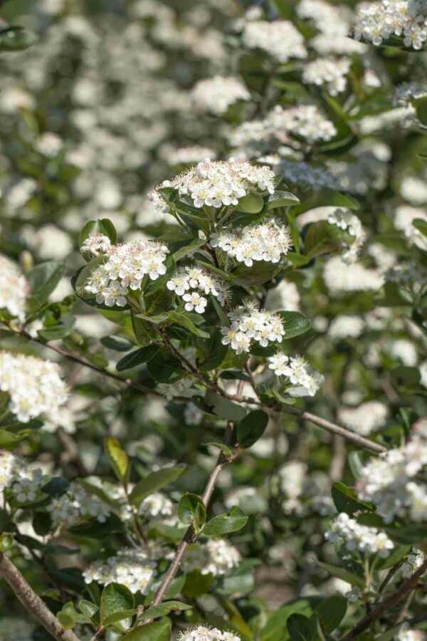 De bloeitijd van de Aronia prunifolia 'Viking' is in mei. Deze heester toont dan zijn witte bloemen en is geschikt voor zowel zon als halfschaduw.