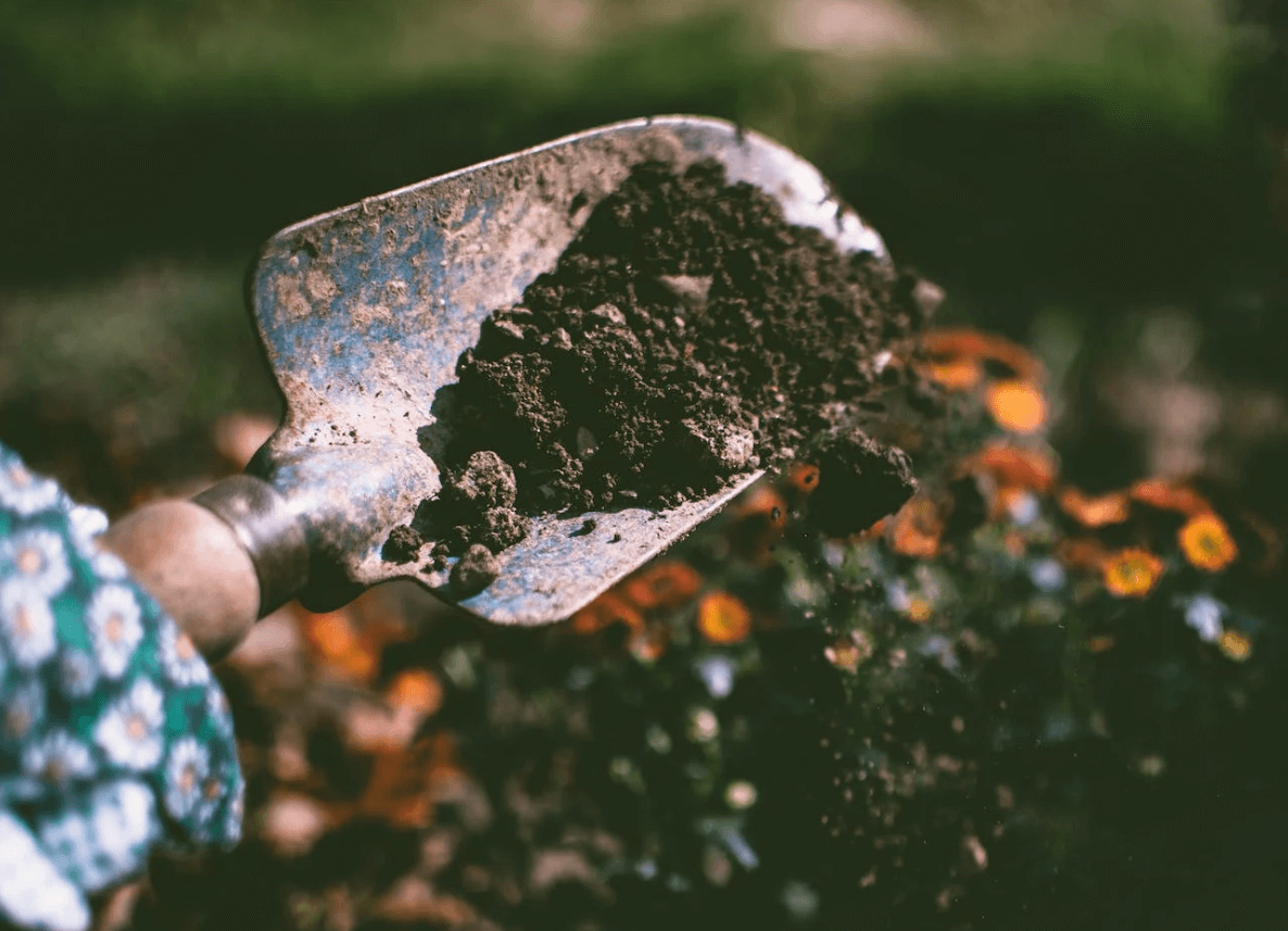 - Maak de grond rond los en meng hierbij 3cm potgrond . Dit helpt de plant om zich snel te vestigen.