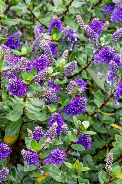 De Hebe franciscana is een wintergroene heester die bekendstaat om zijn paarse bloemen in de zomer. Deze plant trekt bijen en vlinders aan en is ideaal voor kustgebieden omdat hij zoute lucht goed verdraagt. Bovendien heeft de Hebe franciscana weinig onderhoud nodig en kan hij in zowel de zon als halfschaduw groeien.