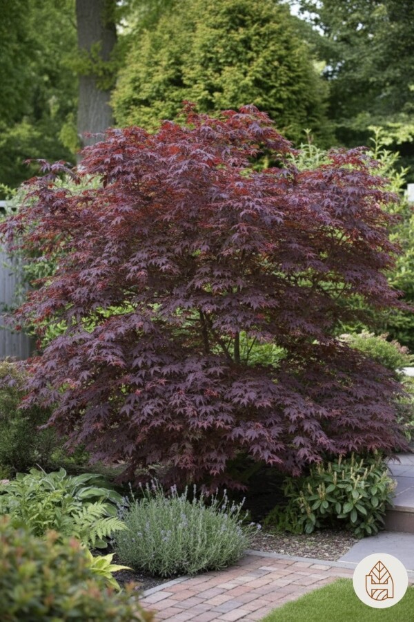 Ideale plaatsing van een Acer palmatum 'Bloodgood' struik 150-175 cm (Japanse esdoorn)