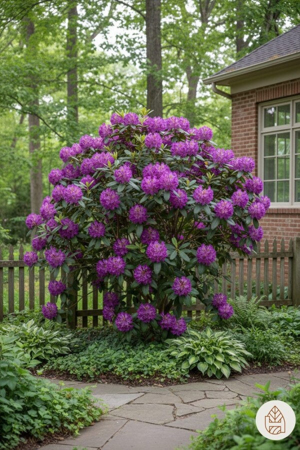Toepassing van de Rhododendron 'Marcel Menard' in de tuin
