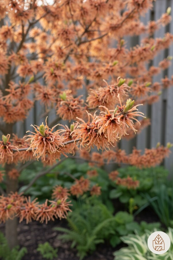 Toepassing van de Hamamelis intermedia 'Jelena' in de tuin