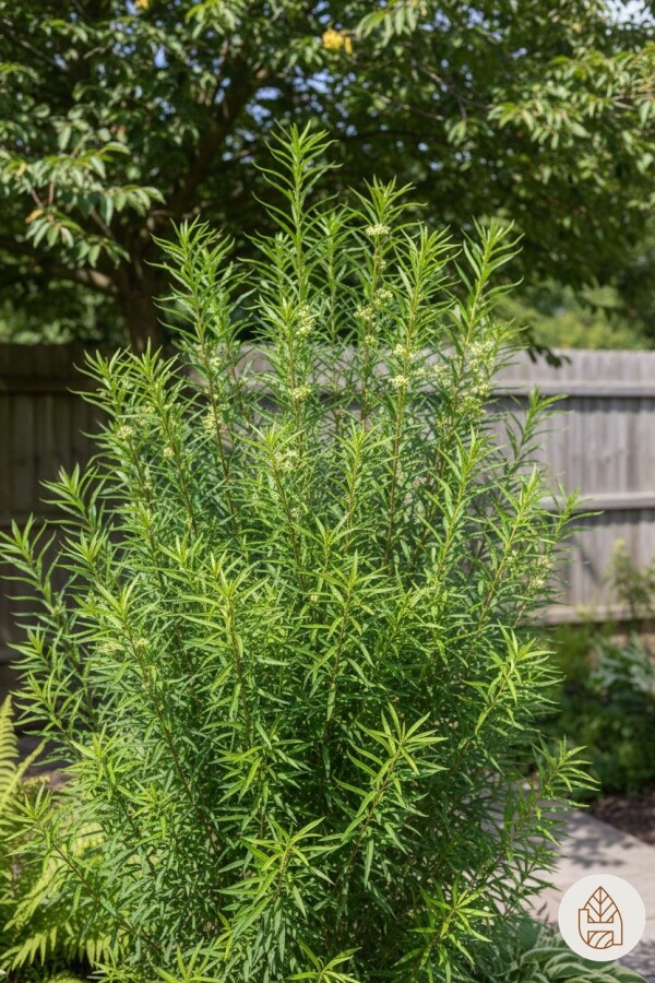 De volwassen hoogte van de Frangula alnus 'Fine Line' is ongeveer 450 cm. Deze plant is ideaal voor tuinen waar ruimtebesparing belangrijk is.